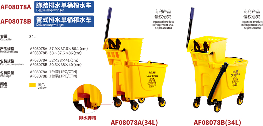 (6)雙桶設計,清水污水分開(kāi),拖把隨意清洗。
